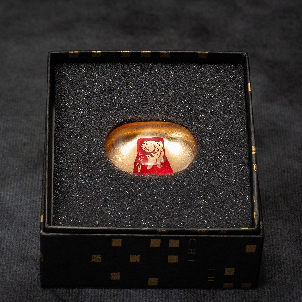坐漁荘のシンボル「カサゴマーク」をあしらい、金箔をあわせた上品な仕上がりです。